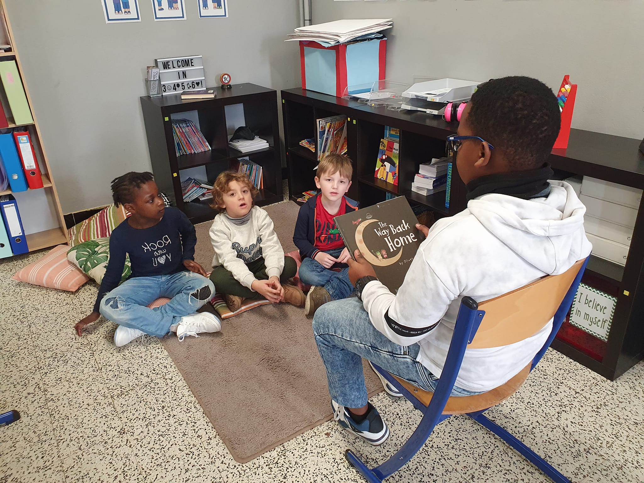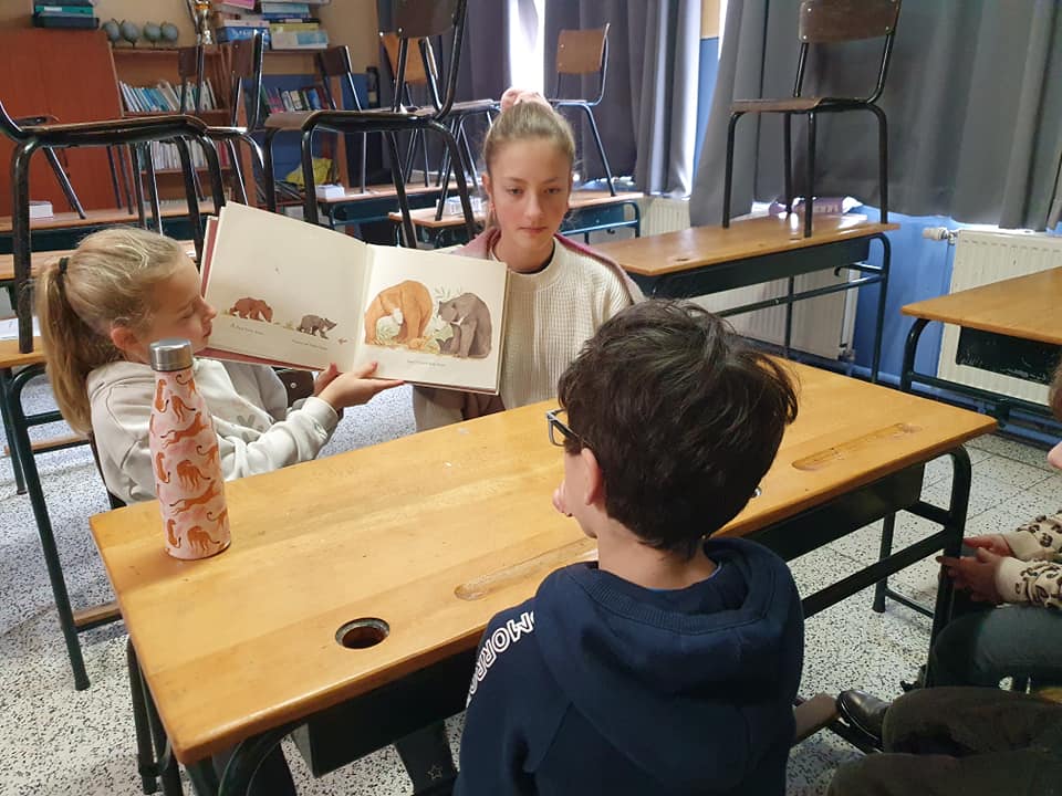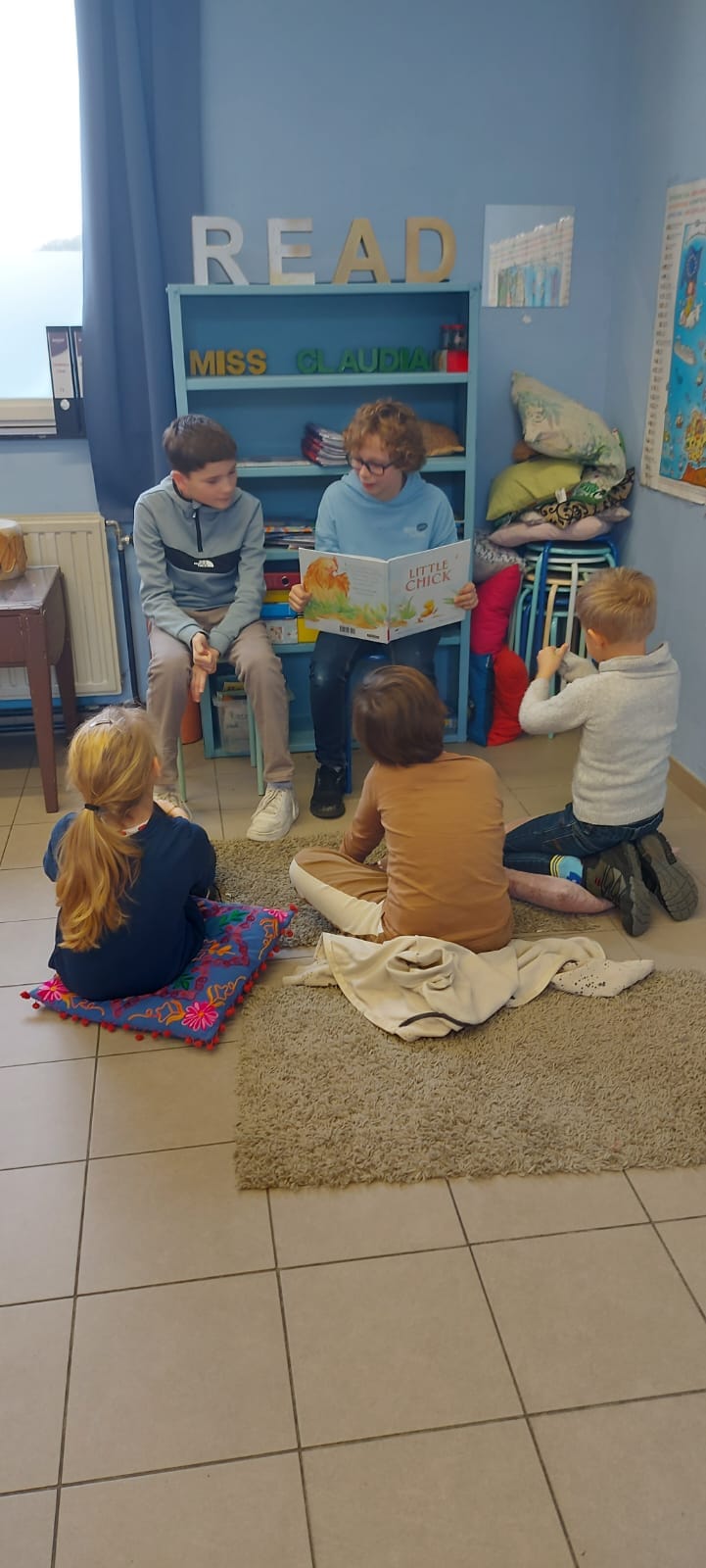 Les élèves de 5ème et 6ème sont allés lire des livres en anglais aux 1ères et 2èmes. Ils ont eu la chance de bénéficier des conseils d'une étudiante bibliothécaire/documentaliste pour rendre leur lecture plus vivante. Un beau moment de partage !