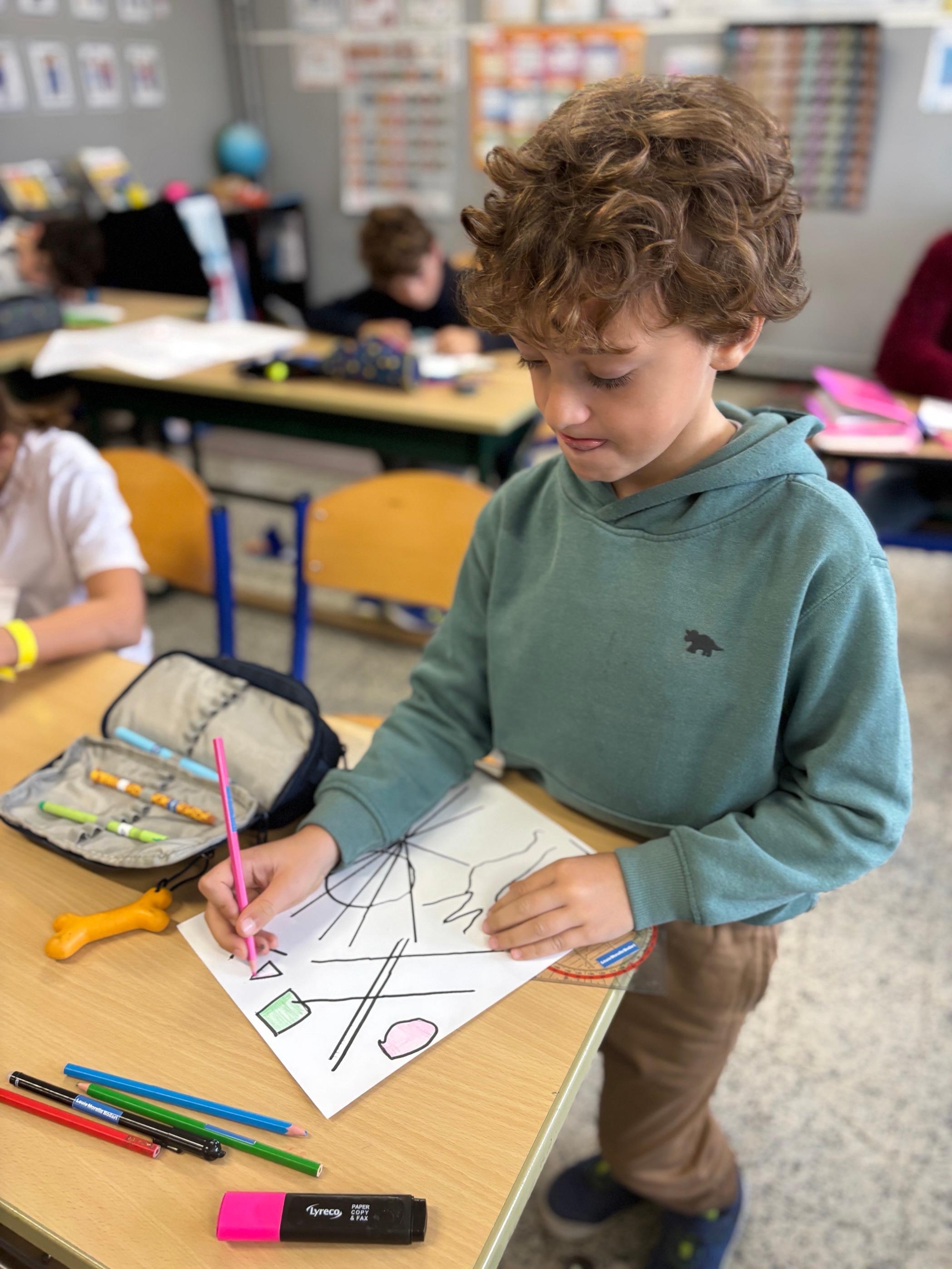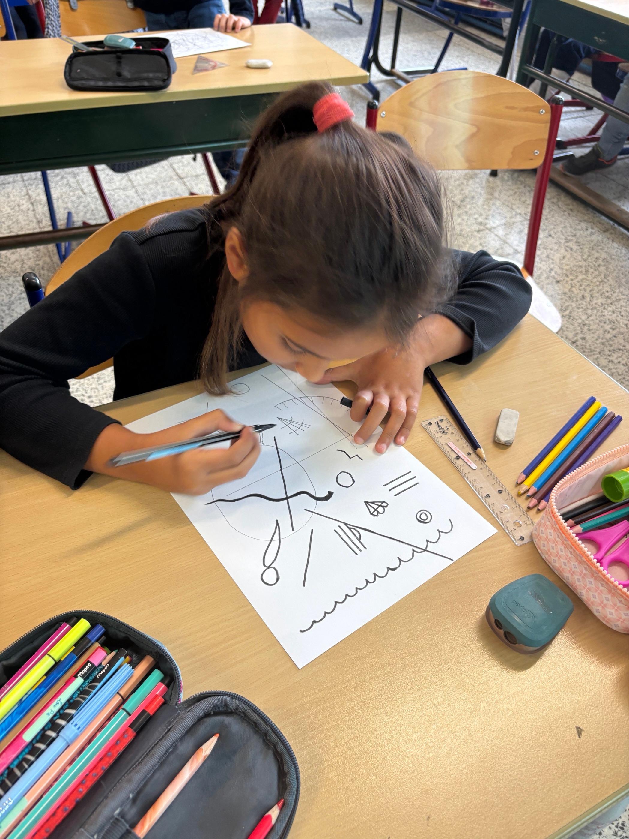 Today we discovered Vassily Kandinsky and his painting full of curved, broken and straight lines. The 3rd graders learned this new notion and the 4th graders reviewed it with them. We then started a nice work of art, inspired by Kandinsky.
