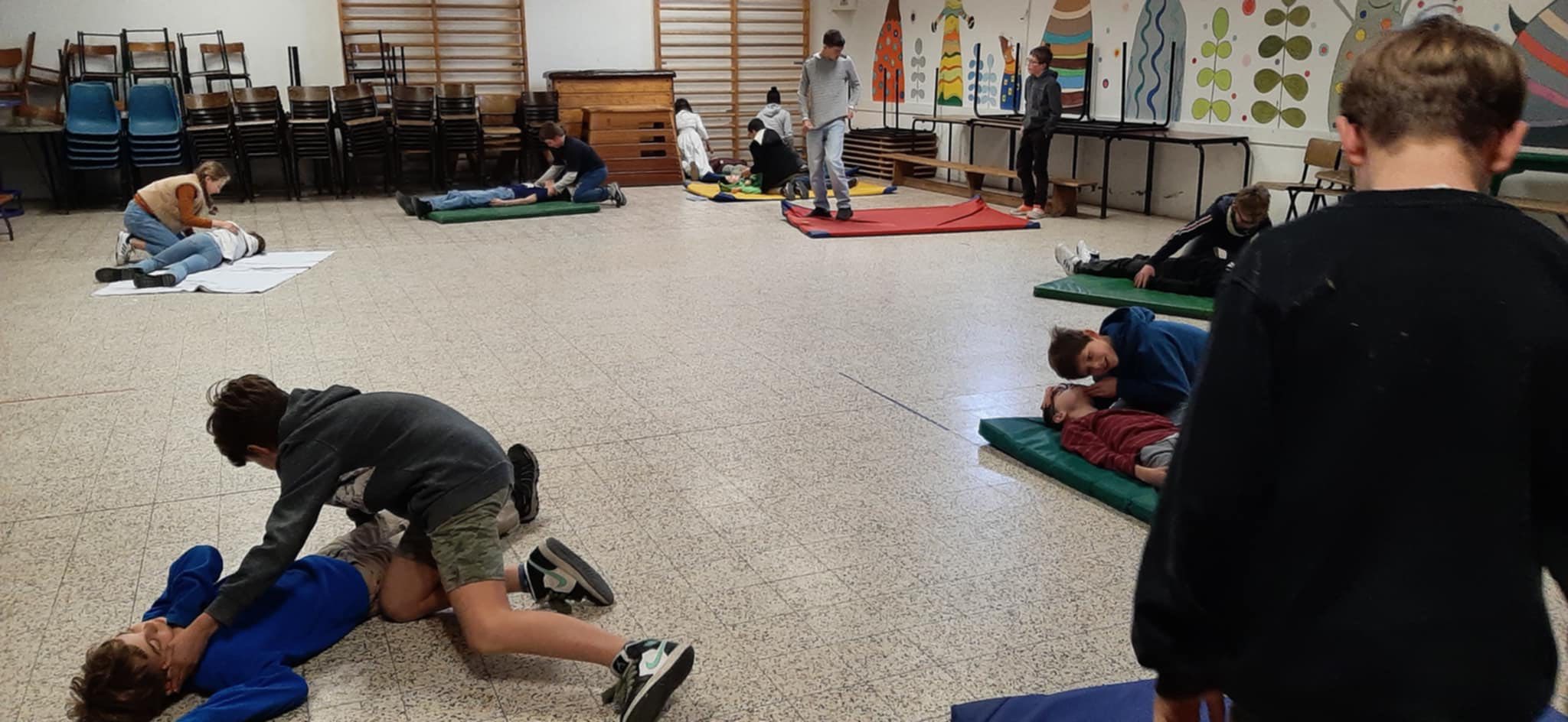Aujourd’hui, les élèves de 5-6 ont vécu leur première journée de formation aux premiers secours ! Les enfants ont appris comment bien réagir et ont essayé d’appliquer tout cela avec des mises en situation et des maquillages très réalistes. Une chouette journée très intéressante et enrichissante.